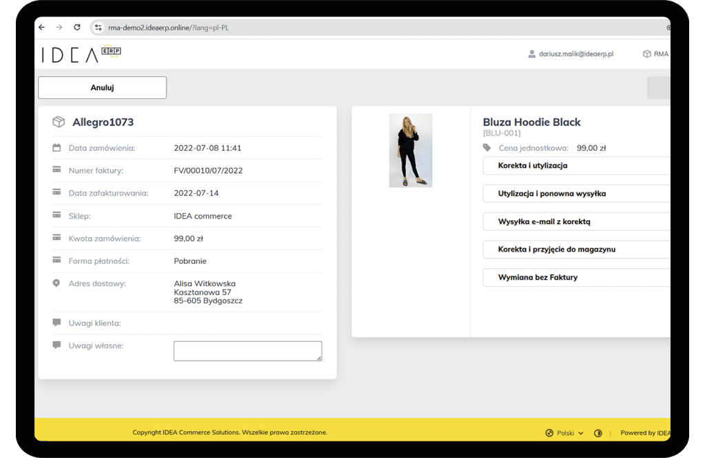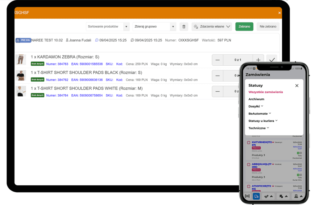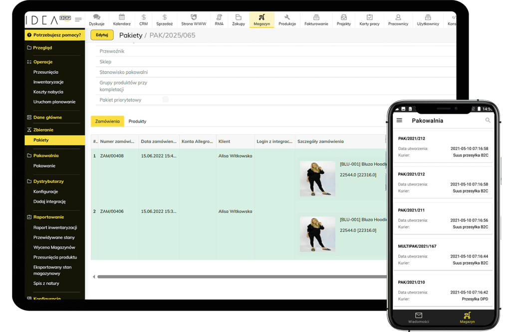 - otrzymujesz system, który zautomatyzuje procesy takie jak obsługa zamówień, synchronizacja stanów magazynowych, kompletacja i pakowanie czy wystawianie dokumentów sprzedaży. Koniec z ręczną pracą i “szyciem” na trytytkach